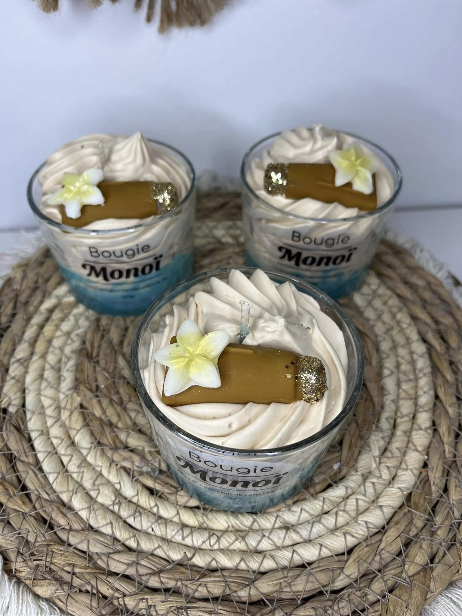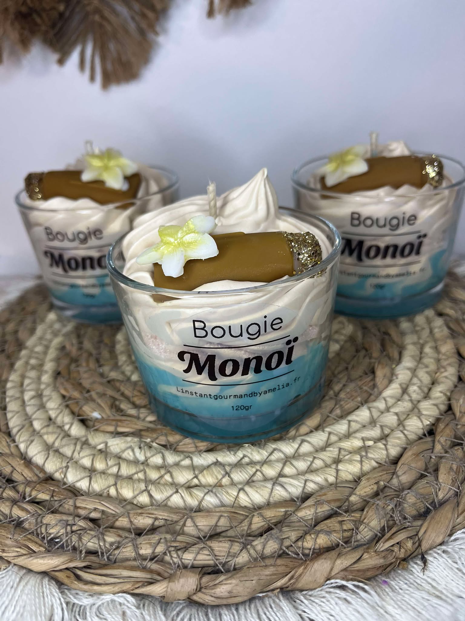 Découvrez la bougie monoï et immergez-vous dans l'exotisme pur avec une bougie qui entrelace subtilement les notes de noix de coco, tubéreuse, fruitée et florale, capturant l'essence même des jardins tropicaux luxuriants.